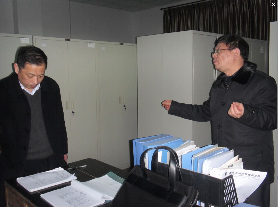2015年3月10日下午,重庆新鸥鹏教育集团董事长办公室张善强主任、公共事务部机要档案室负责人陆大钺一行到学院检查指导工作。